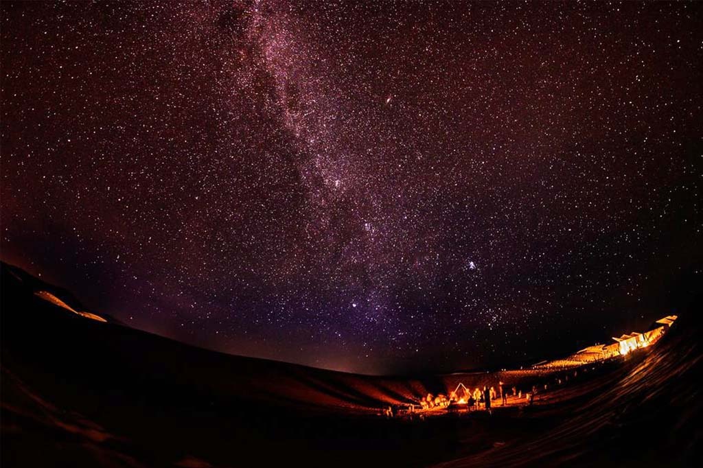 Switch from your 4WD vehicle to camels and trek across the golden dunes of Erg Chebbi as the sun sets over the horizon. Arrive at your Berber desert camp, enjoy traditional dinner and music around the campfire, and sleep in a cozy nomad tent beneath the stars.