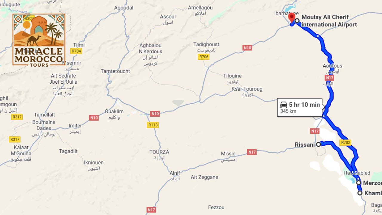 3-Day Desert Tour from Errachidia to Merzouga Map: