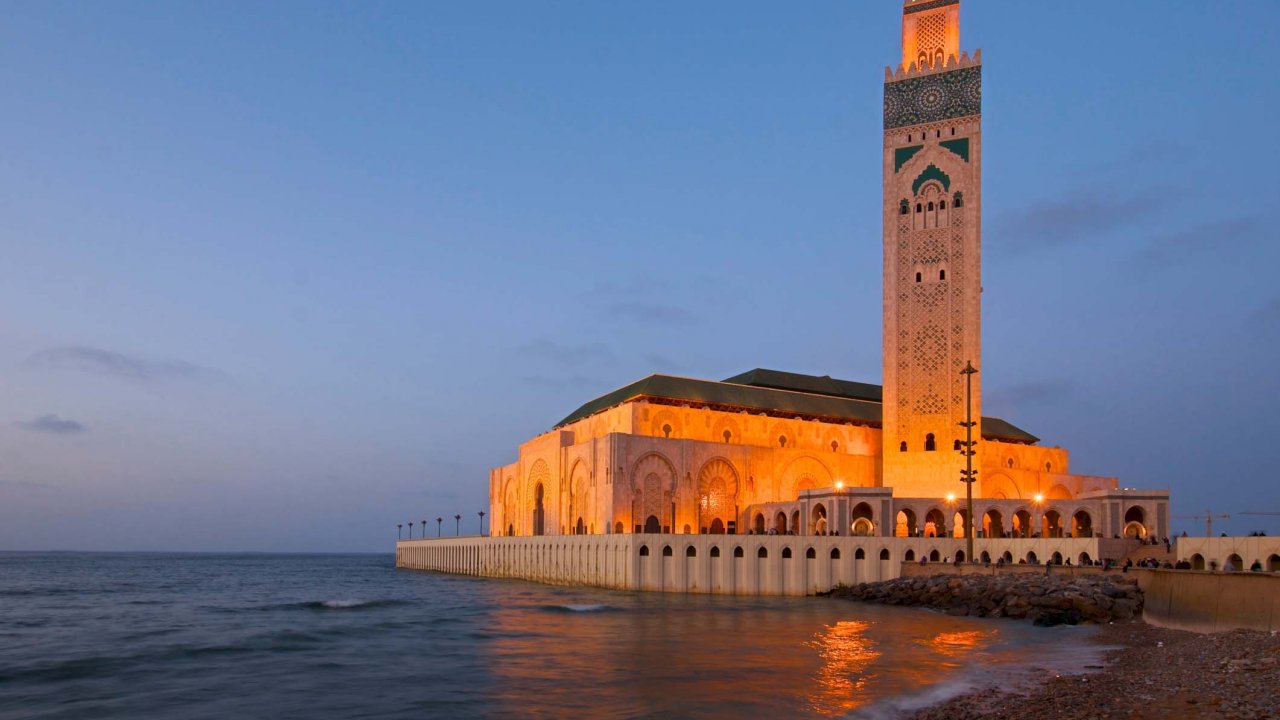 After breakfast, begin your city tour of Casablanca, Morocco’s modern economic capital. Visit the magnificent Hassan II Mosque, the Corniche, Mohammed V Square, United Nations Square, the Law Court, Prefecture, and the Central Post Office.