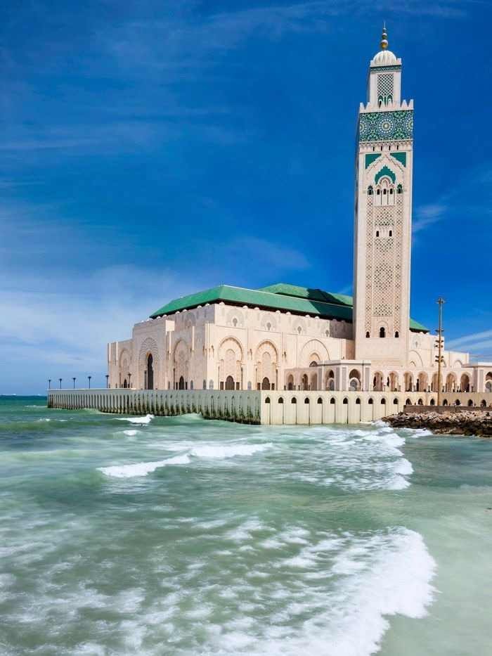 Upon arrival in Casablanca, your first stop is the spectacular Hassan II Mosque, beautifully positioned on the Atlantic coast. You’ll have time to admire its intricate mosaics, marble details, and impressive oceanfront setting. Guided visits inside the mosque are available as an optional experience.